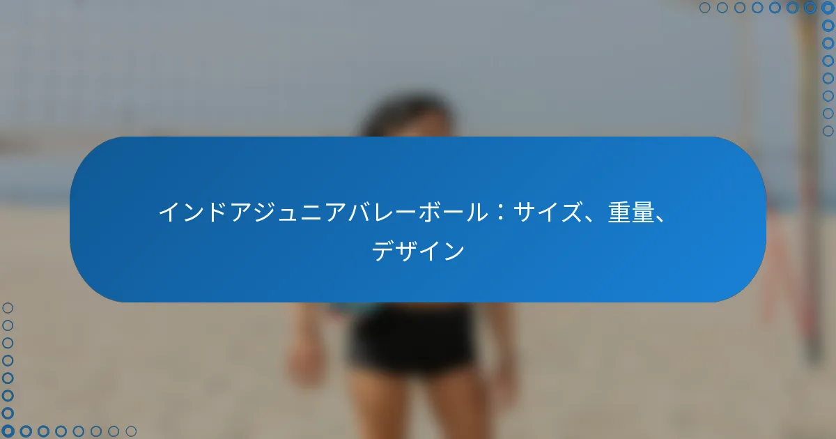 適切なインドアジュニアバレーボールを選ぶには、選手のスキルレベルに合わせたサイズ、重さ、デザインなどの要素を考慮する必要があります。これらの要素を理解することで、プレイ中の最適なパフォーマンスと楽しさを確保できます。